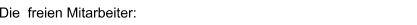 Unsere freien Mitarbeiter unterstützen uns aus freien und überzeugten Gründen. Sie werden von uns auf Anfrage des Kunden benachrichtigt und erhalten vom inhaber für jede Arbeit eine spezielle Instruktion.
