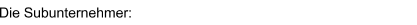Unsere Subunternehmer unterstützen uns bei Arbeiten die Konzessionierten Personals bedürfen. Sie werden von uns nach Art der Arbeit benachrichtigt und erhalten vom Inhaber für jedes Projekt eine spezielle Instruktion. Das Einsatzgebiet unserer Subunternehmer erstreckt sich auf folgende Sektoren: